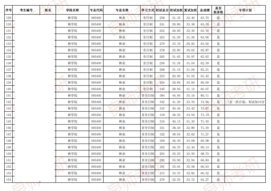 以下为中南林业科技大学26考研一志愿复试拟录取名单(部分)