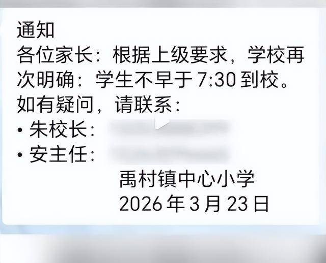 家长随后向记者证实,学校当天已发布通知,明确要求学生到校时间不早于7点30分。