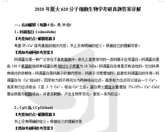 2002-2025年厦门大学831分子细胞生物学考研真题参考答案