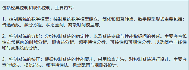 2、控制系统的分析:分析控制系统的稳定性,以及系统参数与性能指标间的关系。主要考查线性定常系统的时域分析、根轨迹分析、频率特性分析、可控性和可观性分析,以及简单非线性和时变系统的分析。