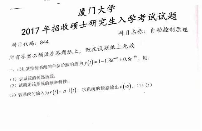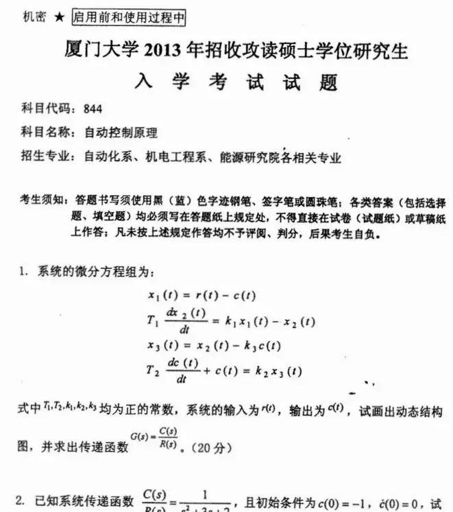 26年厦大844自动控制原理考试范围: