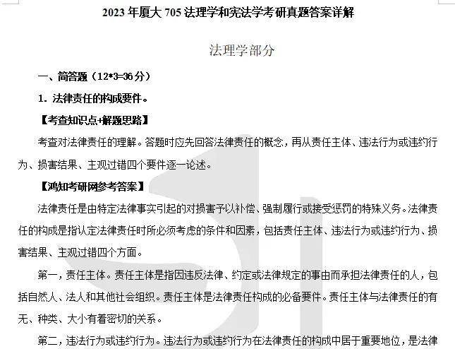 2007-2024年厦门大学705法理学和宪法学考研真题参考答案
