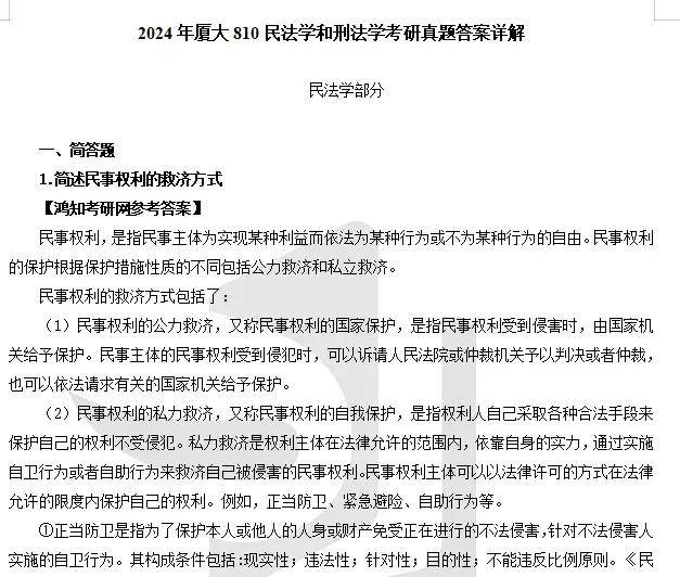 2015-2024年厦门大学810民法学与刑法学考研真题参考答案
