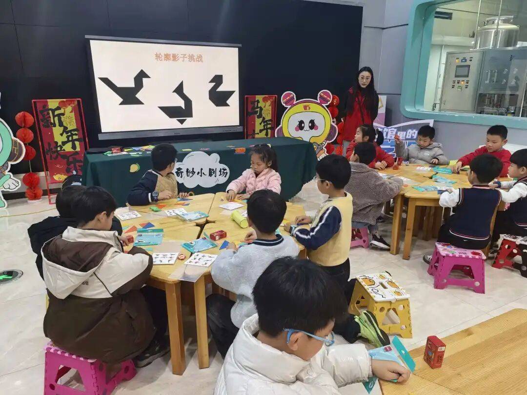 动手环节热闹非凡,同学们充分发挥想象力,用七巧板拼出了各式各样的创意造型。