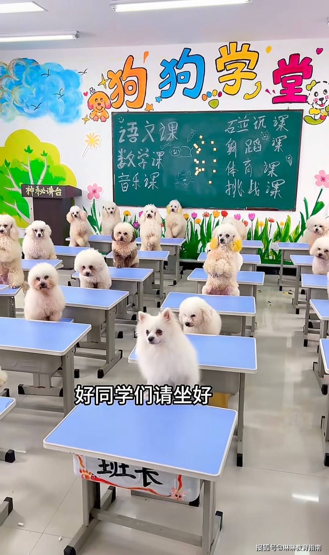 看着镜头下很多只狗坐在板凳上,有模有样地学习站立、握手等动作时,你别说,还真有点像样,这家宠物学校的创始人表示:我们这儿的配置,可比一般的人类幼儿园要豪华多了。