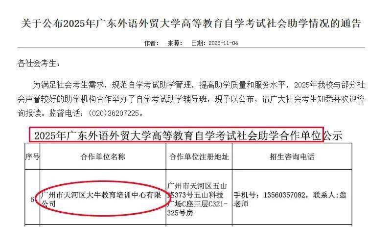 刚刚!广东外语外贸大学小自考助学机构名单公布!大牛教育当选!