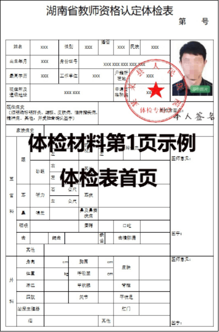 体格检查统一按照《湖南省教师资格认定体检表》(附件3,A4纸正反两面打印)内容进行。