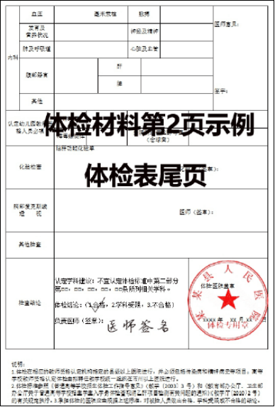 ②【体检材料】项。需上传《湖南省教师资格认定体检表》(需包括胸透和肝功能检验单)。