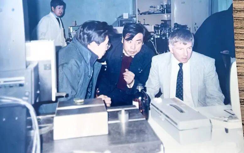 图3. 1990年在长春光机所协助外国专家检修设备(前左一)