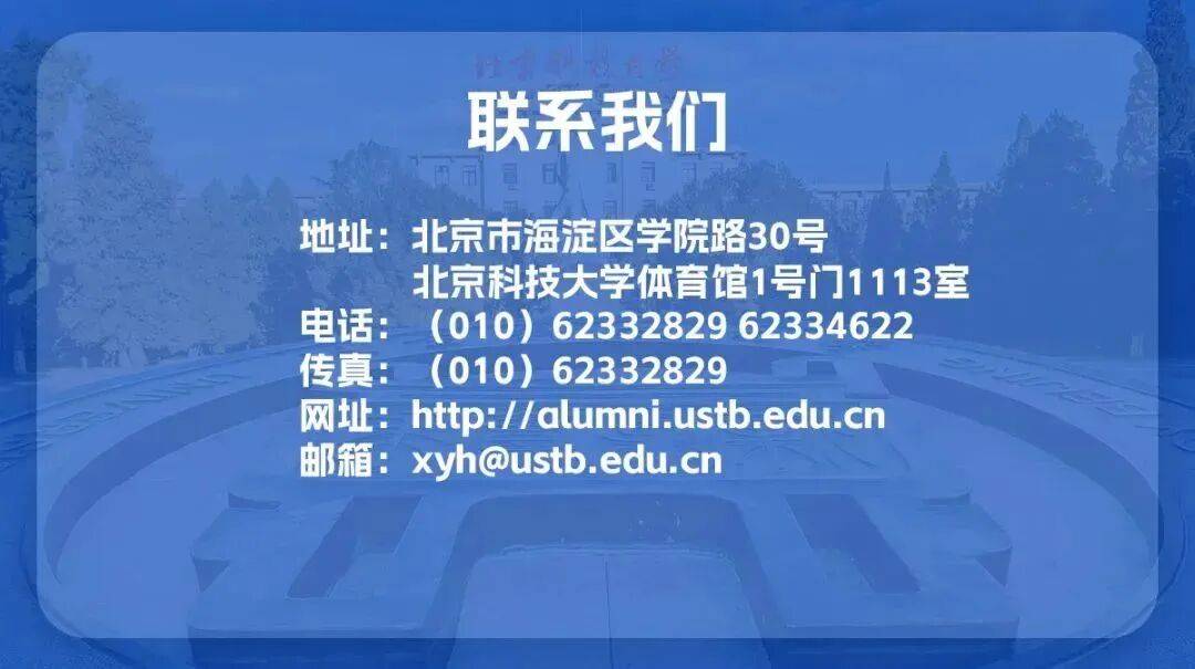 欢迎您使用云盘、电子邮件等方式提交资料,云盘链接、文献资料、照片、视频等可发送至dag@ustb.edu.cn,请在邮件主题中注明“档案资料征集+姓名+身份(教职工/学生)+入学/入职年份”。