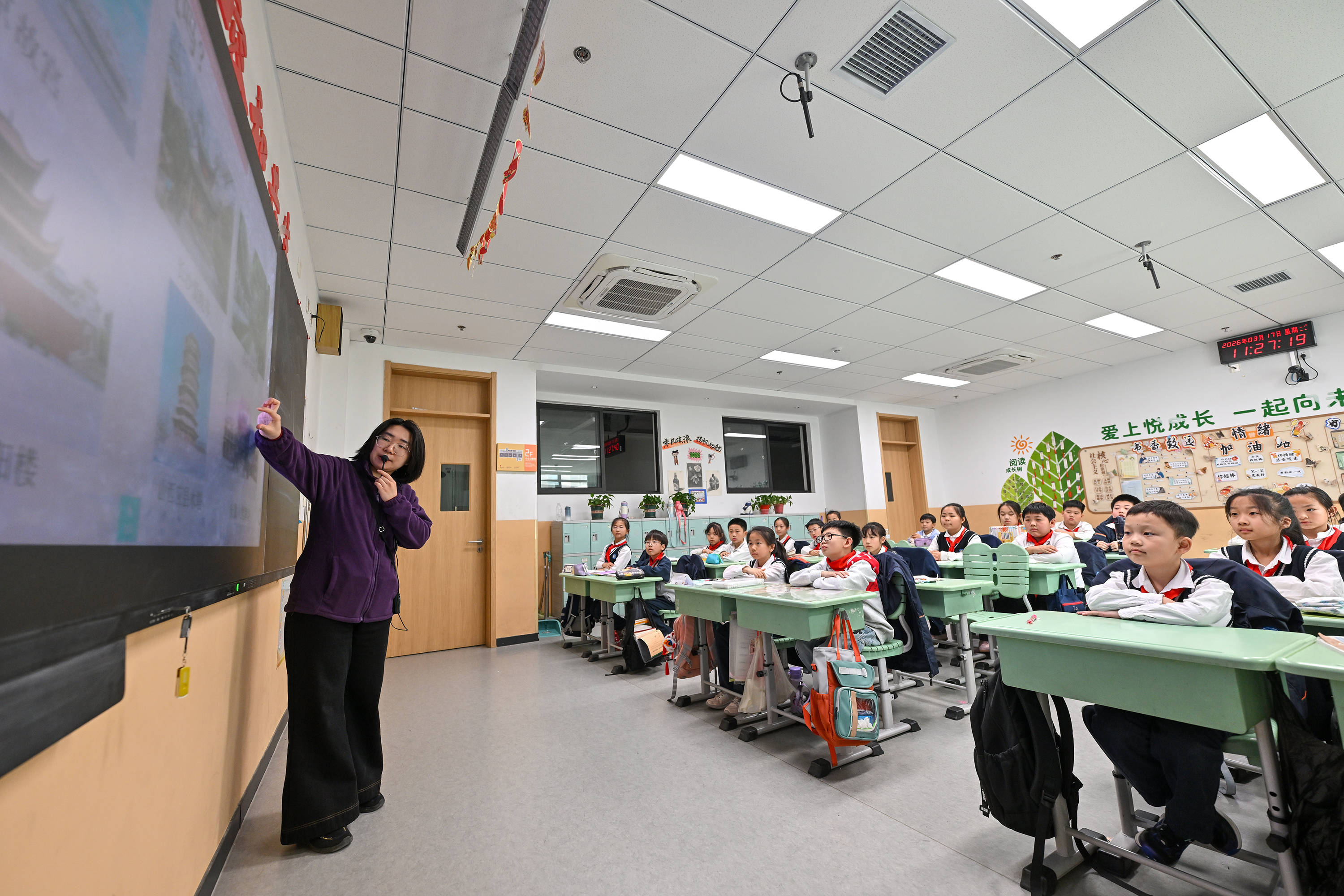 教师在雄安容和悦容小学授课。(受访者供图)