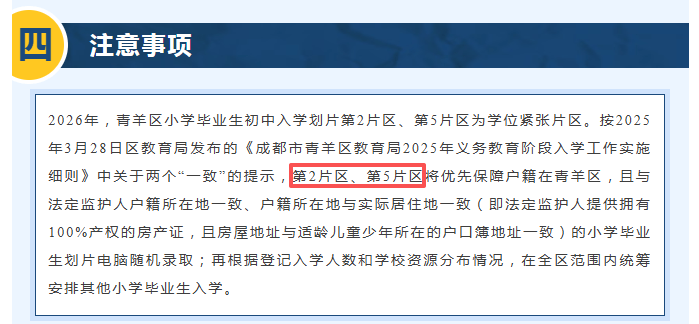 去年,青羊区就在招生公告里提过:2026年学位紧张的片区,小升初要优先保障“双一致”的娃娃。今年,政策直接明确了——青羊二片和青羊五片属于学位紧张片区。其实,这也在大多数家长的预期之中。