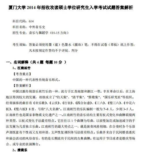 2009-2014,2018-2019、2023、2025年厦门大学614中外音乐史考研真题参考答案