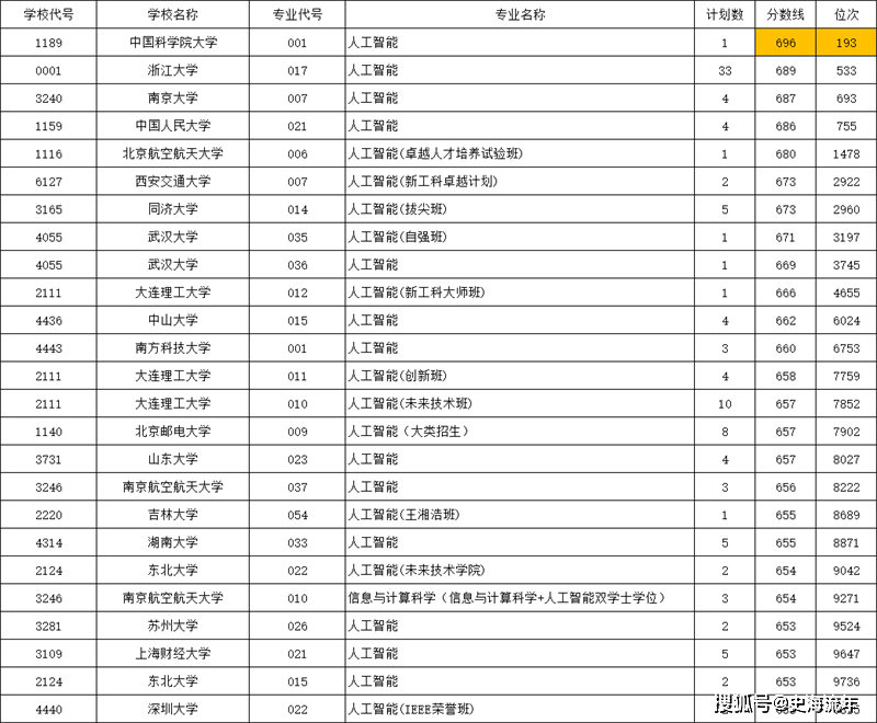 第三梯队(670-680分,1500-3000名):涵盖北航、西安交大、同济、武大等中坚985高校。值得注意的是,武汉大学的“自强班”(671分)比普通“人工智能”专业(669分)高2分,显示了特色培养项目的吸引力。