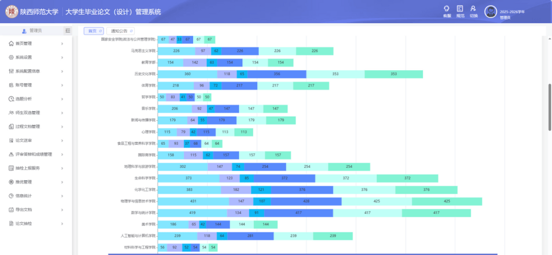 平台内置全周期进度管理功能,对论文选题、开题报告、中期检查、定稿审核、答辩评审等关键环节进行实时跟踪,有效规避学术不端风险,强化过程性质量管理,切实保障毕业论文撰写质量与学术规范水平。陕西师范大学初步形成了
