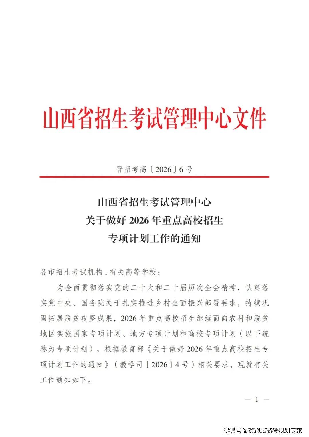 为帮助高考考生及家长全面了解高校专项计划,理清报考、审核、录取等关键疑问,精准把握政策细节,助力农村优秀考生顺利升学,山西晚报·山河+记者从太原市招生考试管理中心了解到,该中心结合山西省招生考试管理中心相关规定及最新政策,为全省农村考生与家长深度解读2026高校专项计划报考条件、流程、录取规则及避坑技巧。