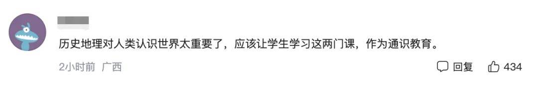 有网友看到这种现象担忧不已,表示:历史地理对人类认识世界太重要了,应该让学生学习这两门课,作为通识教育。有这种担忧的原因很明显,以史为镜,铭记历史,历史不仅是过往的记录,更是民族精神的根脉与未来的指南,所以说不能忽略历史学习,年轻人要牢记历史,才能不辱使命,为振兴中华而不断奋斗,成为一名爱国有担当的人,这也是为什么从初中开始要专门系统性学习历史的原因。