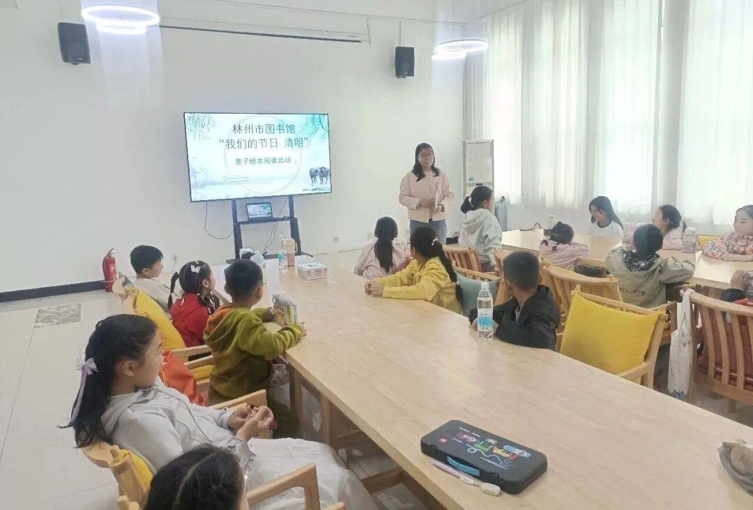 4月4日,林州市图书馆在多功能活动室举办桔香绘读第六期“我们的节日·清明”亲子绘本阅读活动。