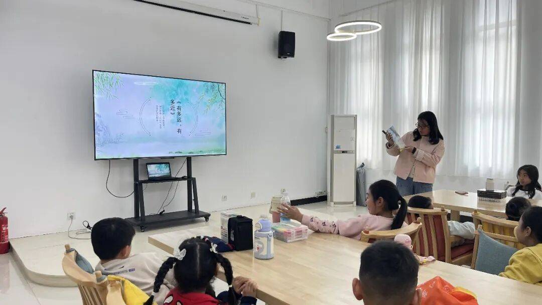 分享环节,桔子老师由杜牧的《清明》一诗引入主题,介绍了清明节的由来、习俗及文化内涵,在孩子们心中种下传统文化的种子。还带领大家共读中国原创绘本《有多远,有多近》,在点点忧伤又充满关爱与温情的故事里,孩子们体悟到家族的记忆、亲情的牵绊,同时又通过故事情节对清明节扫墓祭祀、踏青、插柳、荡秋千、放风筝等习俗有了更直观的认识。