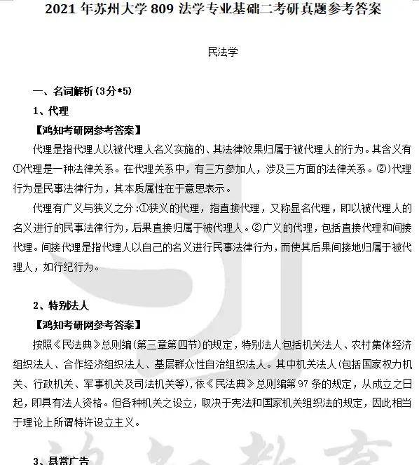 (2)809法学专业基础二历年真题答案,2020年之前分专业