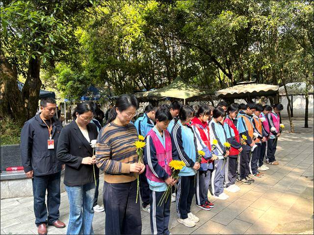 党员思政课教师陈世勇,以现场教学的形式,为全体师生带来一堂沉浸式红色思政课。陈老师立足烈士陵园的红色沃土,结合本地革命英烈的英勇事迹,深情讲述了革命先辈们在战火纷飞的年代里,为民族独立、人民解放抛头颅、洒热血,不畏强敌、浴血奋战、舍生取义的感人故事,细致解读了英烈精神的时代内涵。他勉励同学们,要从北川抗震救灾精神中汲取奋进力量,铭记历史、不忘初心,把爱国情、强国志、报国行融入日常学习生活,以实际行动传承红色血脉,扛起新时代青少年的责任与担当。