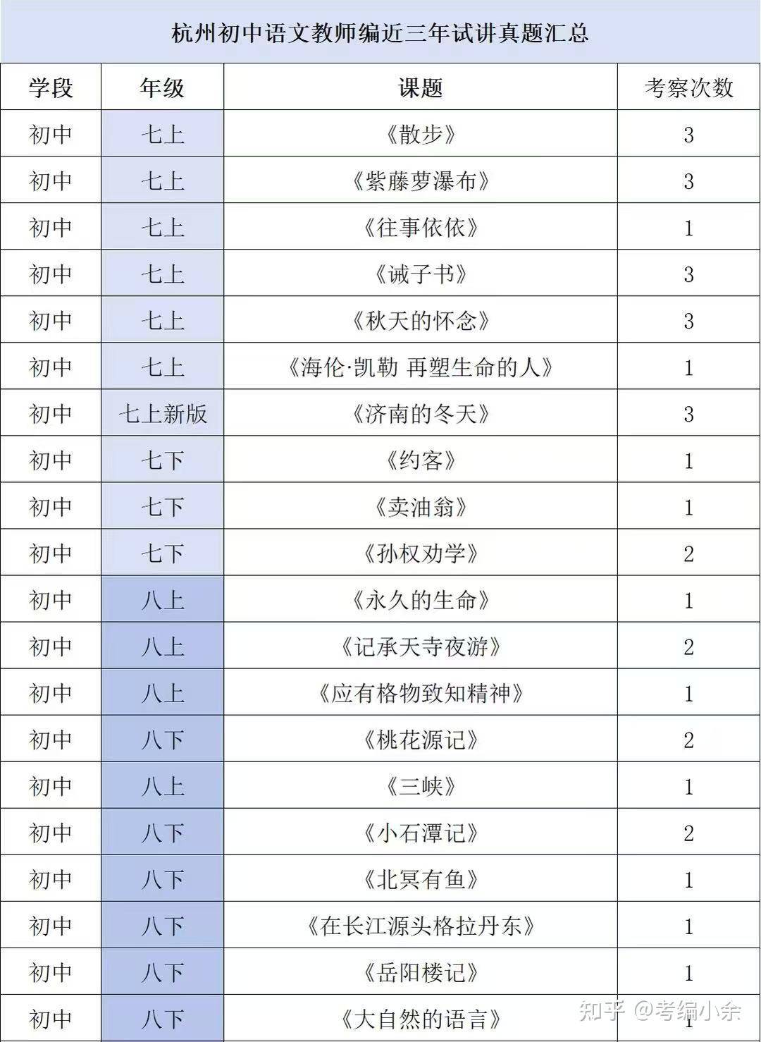 最后提醒大家:萧山区这次面试,初中语文段试讲考到新教材概率非常大,尤其7和8年新教材为主,大家在熟悉教材一定重点看新教材,七下和八下考到概率大。