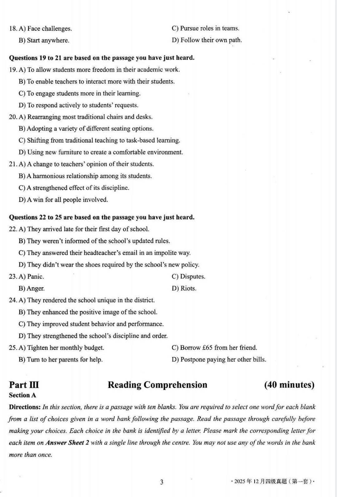 2025年12月英语四级真题试卷及答案解析(第三套)
