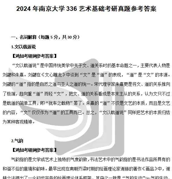 2022-2026年南京大学336艺术基础考研真题参考答案