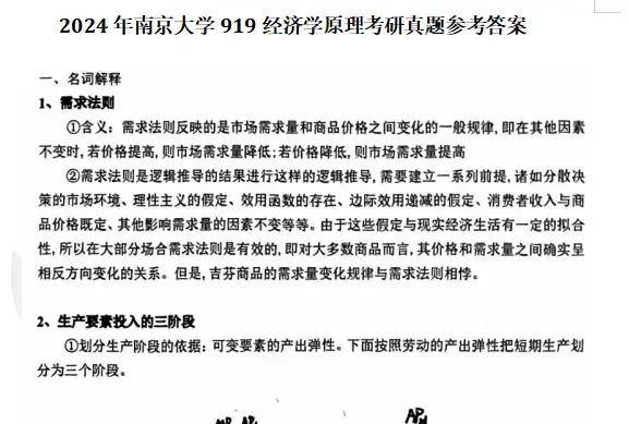 1994-2024年南京大学919经济学原理考研真题参考答案