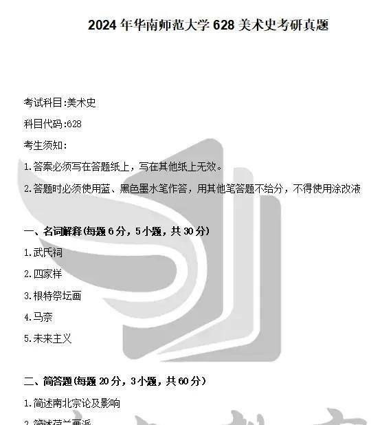 2024年华南师范大学628美术史考研真题与参考答案(回忆版)