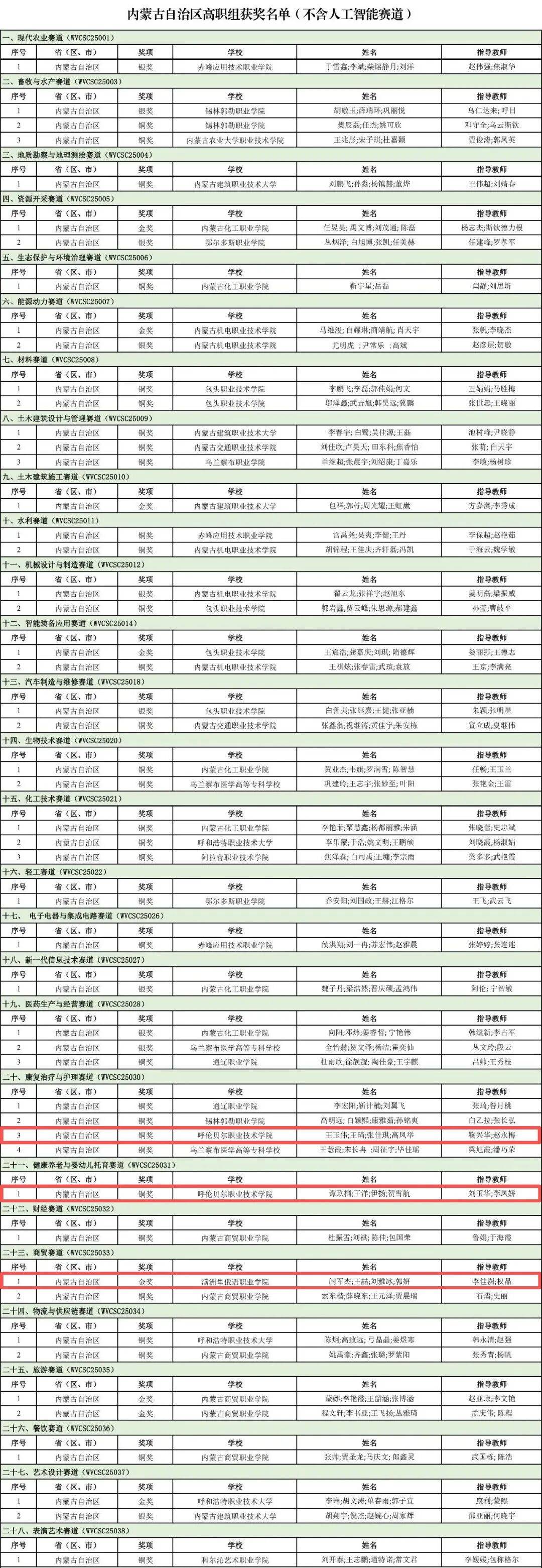 近日,教育部公布2025年世界职业院校技能大赛获奖名单,其中,内蒙古自治区共获得83个奖项。