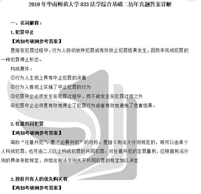 2019年华南师范大学833法学综合基础二(刑法总论、民法)考研真题答案详解