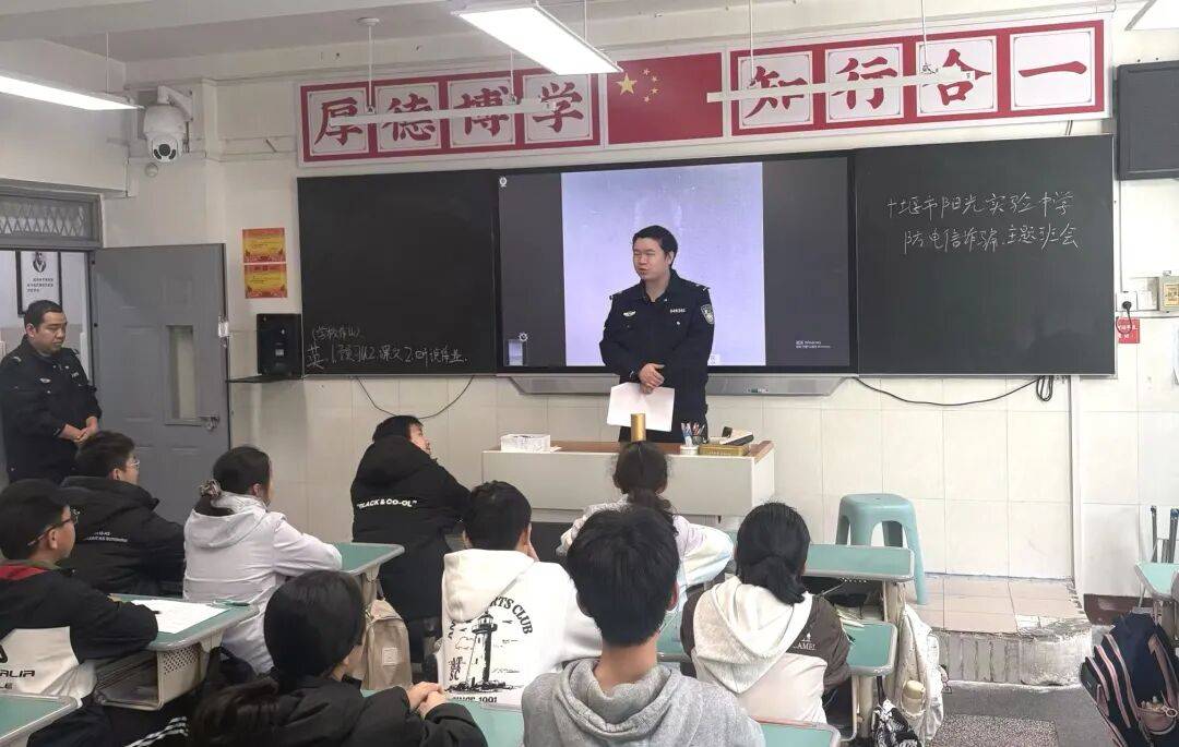▲阳光实验中学联合汉江路派出所开展“防电信网络诈骗”主题班会。(通讯员 崔伟)