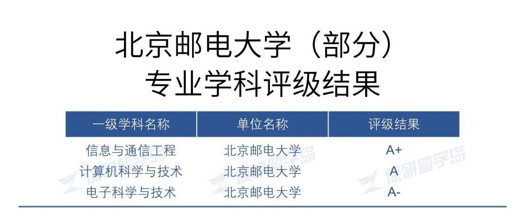 在北京这个遍地是“金子”的地域,北京邮电大学恰好成为了这个“时代弄潮儿”。根据教育部最新一轮学科评估结果,北京邮电大学信息与通信工程、计算机科学与技术以及电子科学与技术三个一级学科进入A类,其中信息与通信工程为A+,计算机科学与技术为A,电子科学与技术为A-。