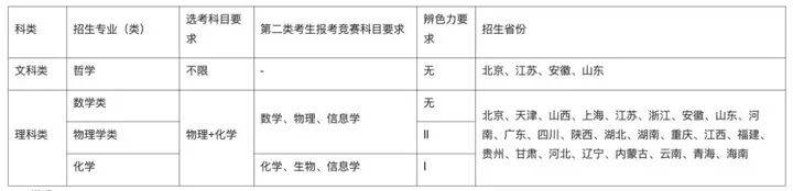 例如,报考数学类或物理学类的考生,其竞赛科目须为数学、物理或信息学;报考化学专业的考生,竞赛科目须为化学、生物或信息学。