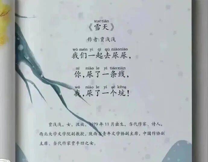 其中最主要的,当数贾浅浅是所谓的屎尿体诗派的开山鼻祖、开派宗师。