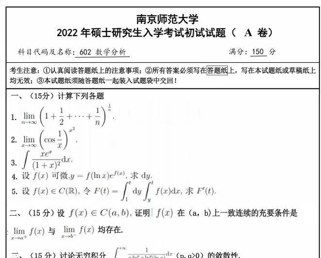 2000-2026年南京师范大学602数学分析考研真题试卷