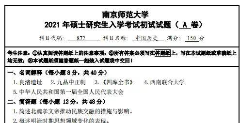 2012-2021年南京师范大学866中国历史考研真题答案详解