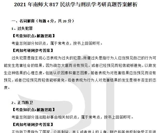 2003-2021年南京师范大学814民法学与刑法学考研真题参考答案