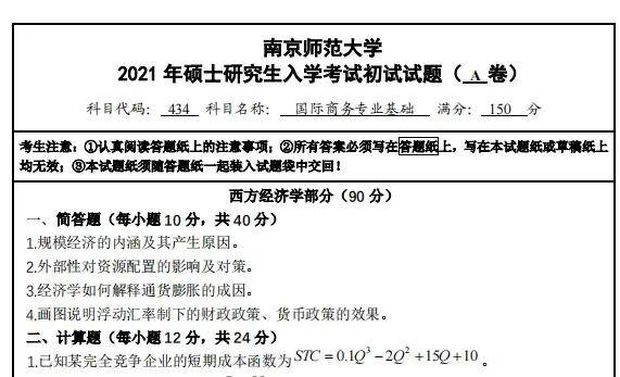 2020-2022年南京师范大学434国际商务专业基础考研真题试卷(不含答案)