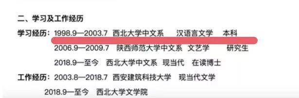 贾浅浅就把西北大学官网上的个人介绍,改成了大学读了3年。反正不管3年,还是5年,好像都不对,毕竟正式的大学本科,都是4年。