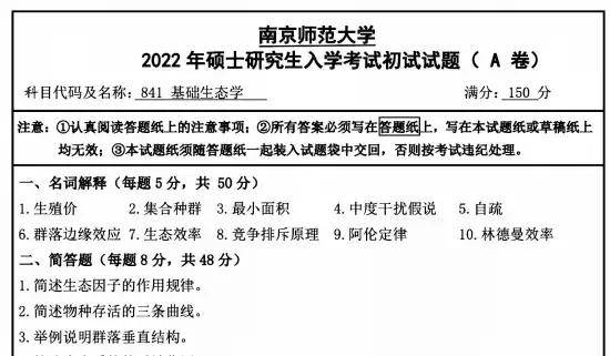 2013-2023年南京师范大学837基础生态学考研真题试卷