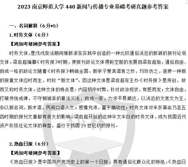 2011-2024年南京师范大学440新闻与传播专业基础考研真题参考答案