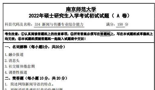 2012-2025年南京师范大学334新闻与传播专业综合能力考研真题试卷