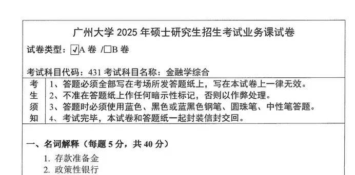 2025年广州大学431金融学综合考研真题试卷【无答案】