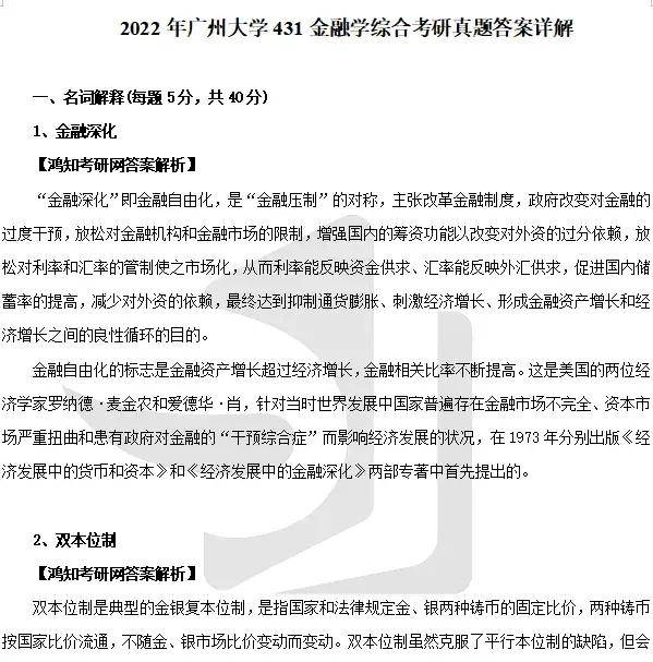 2022年广州大学431金融学综合考研真题试卷与答案详解【不含计算题答案】