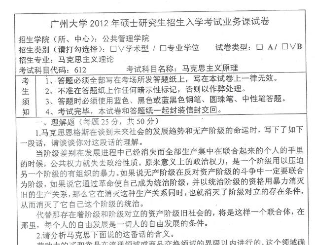 2012-2025年广州大学631马克思主义基本原理考研真题试卷