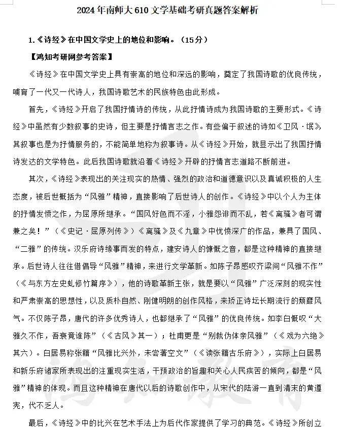 2004-2025年南京师范大学610文学基础考研真题参考答案