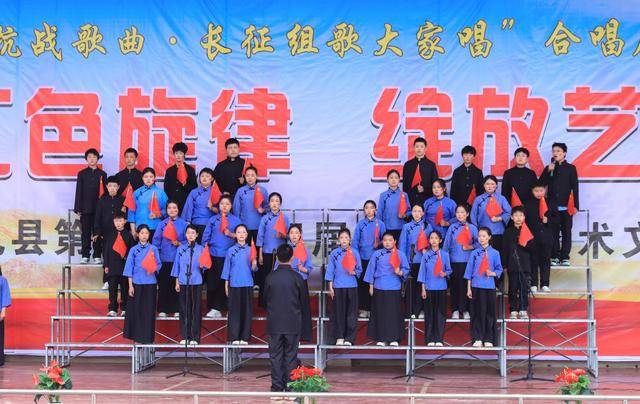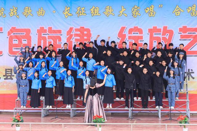 在红歌展演环节,来自七、八年级的班级依次登台,以合唱形式演绎《强军战歌》《没有共产党就没有新中国》《南泥湾》《黄河大合唱》《十送红军》《歌唱祖国》等经典曲目。舞台上,指挥手势铿锵,歌声嘹亮激昂,一首首红色歌曲将现场气氛不断推向高潮。学生们用饱满的热情和青春的嗓音,表达对党和祖国的深情礼赞。