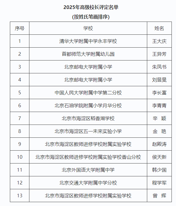 刚刚,2025年海淀区中小学校长职级评审结果出炉。